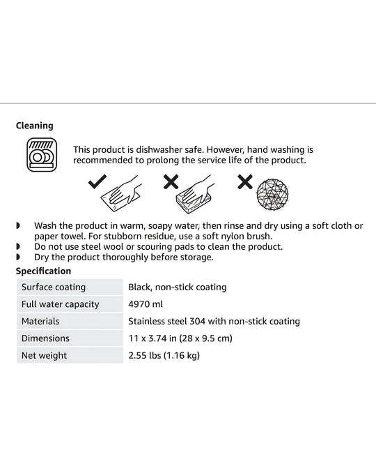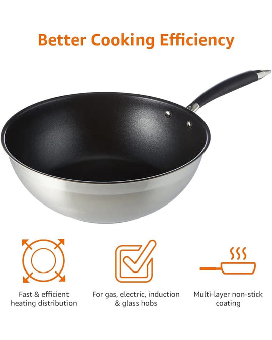 Product details Top highlights Brand : Amazon Basics Material : Stainless Steel Colour : Black Capacity : 4970ML Compatible devices : Gas , Electric Coil 11-inch wok pan made of heavy-gauge, 304-grade stainless steel Whitford Xylan...Sale price Rs 8,500.00Regular price Rs 15,000.00Sale price Rs 8,500.00Regular price Rs 15,000.00 -